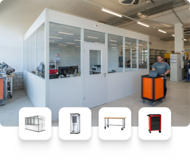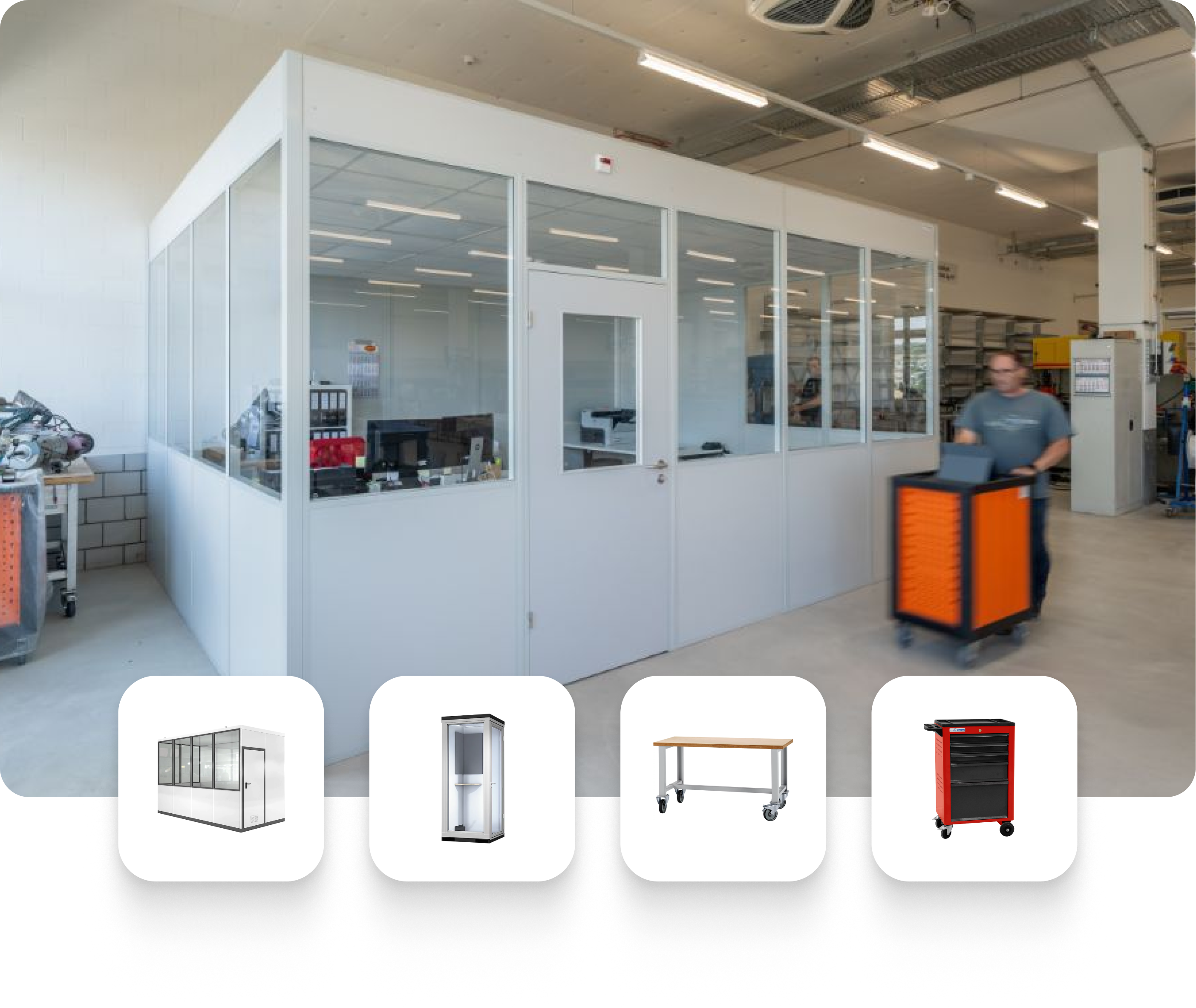Originally, free-standing desks were planned for the new production halls. However, the employees expressed concerns about noise emissions and dust development, aiming to create a protected workspace.