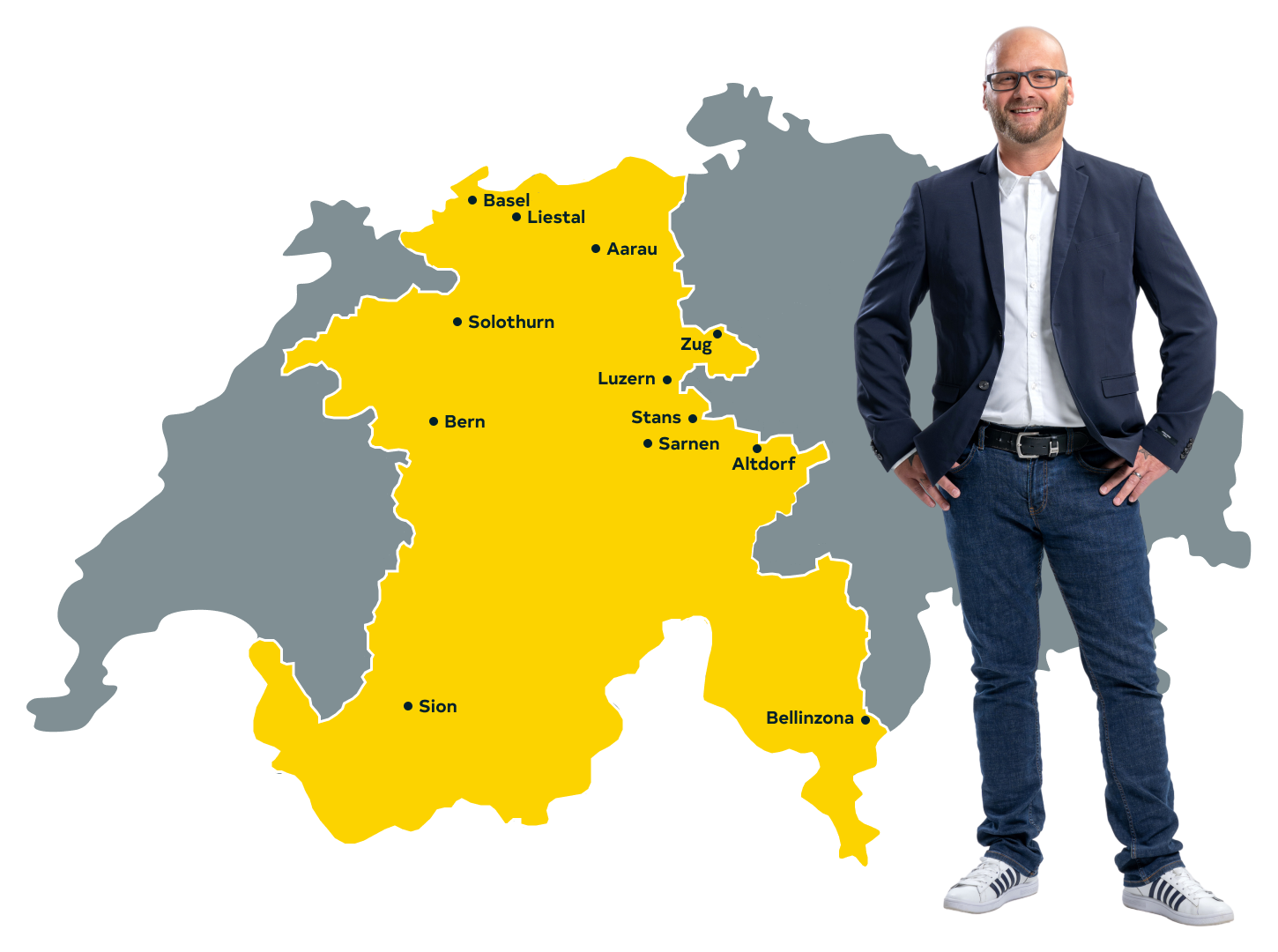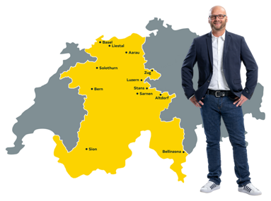 L'expert en postes de travail Karl Feldmann se fera un plaisir de vous conseiller et de vous rendre visite dans les cantons de Bâle-Ville, Bâle-Campagne, Soleure, Berne, Valais, Argovie, Lucerne, Zoug, Nidwald, Obwald, Uri et Tessin.