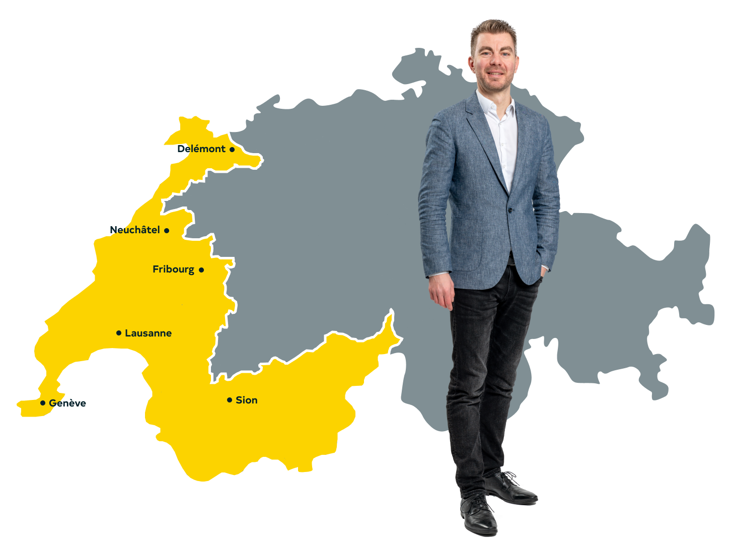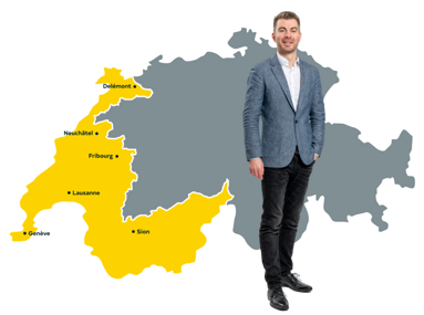 L’expert en solutions de poste de travail Rémy Guenin est à votre disposition pour des consultations et des visites dans les cantons de Vaud, Genève, Neuchâtel, Jura, Fribourg et Valais.