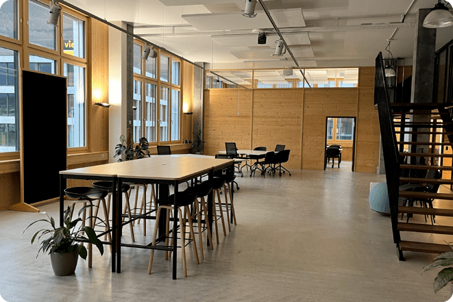 Issu de la nécessité de quitter le bureau à domicile pour favoriser les échanges en personne, l'espace de coworking BIM à Coire a vu le jour