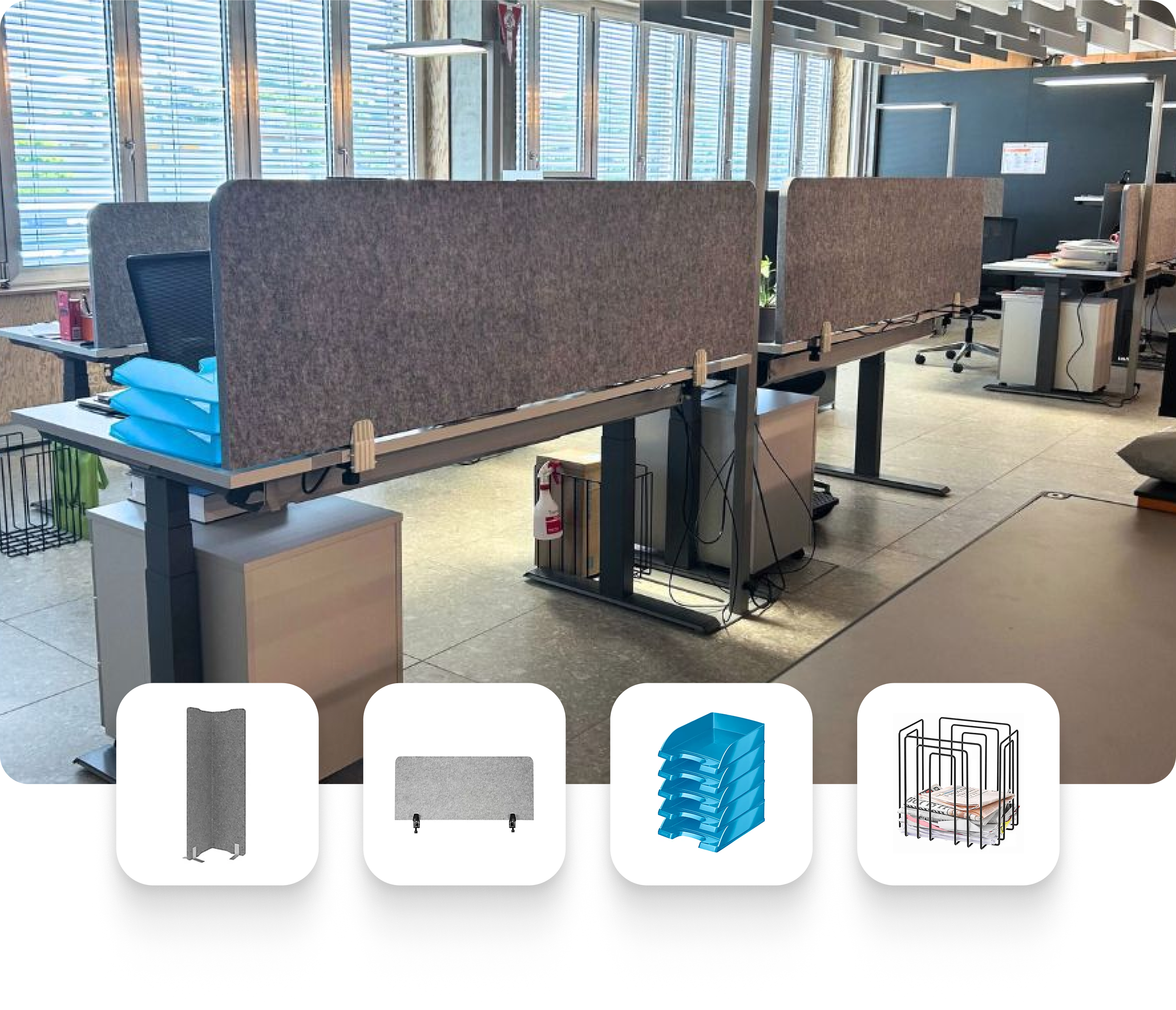 Dans le nouveau bâtiment d’Elsau, Hug devait équiper de A à Z ses bureaux et zones de pause. Cahier des charges : bureaux réglables en hauteur pour les collaboratrices et collaborateurs souffrant du dos, deux guichets complets pour l’accueil clientèle, ainsi que des tables et chaises robustes pour trois salles de pause réparties sur plusieurs étages. Tout devait être opérationnel avant l’ouverture afin que la chaîne logistique reste fluide, sans interruption.
