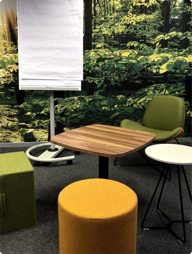 Vi ha ispirato la storia di successo della nostra sala creativa? I nostri esperti certificati di ambienti di lavoro aiutano anche la vostra azienda a creare spazi personalizzati.