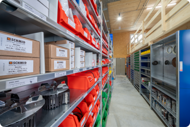 Le soluzioni di magazzino sono state installate in stretta collaborazione con Schmid – ogni fase del processo è stata adattata ai requisiti specifici e individuali.