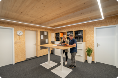 Schmid AG si trovava di fronte alla sfida di trasferirsi in un edificio grezzo e di attrezzarlo con postazioni di lavoro moderne, ergonomiche e sostenibili.