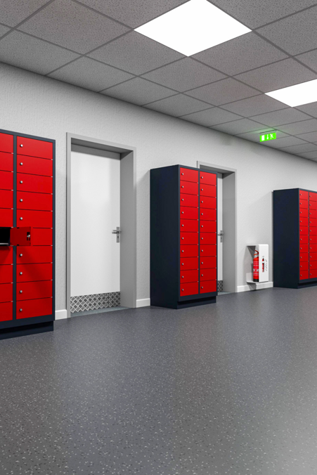 Spogliatoi strutturati e soluzioni di stoccaggio sicure per collaboratori, visitatori e team.