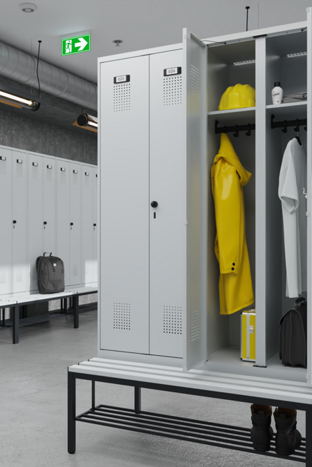 A seconda del settore, le esigenze per spogliatoi e spazi di stoccaggio variano notevolmente. Diverse dimensioni dei comparti, tipologie di porte ed elementi di configurazione permettono di creare soluzioni perfettamente adattate al vostro utilizzo.