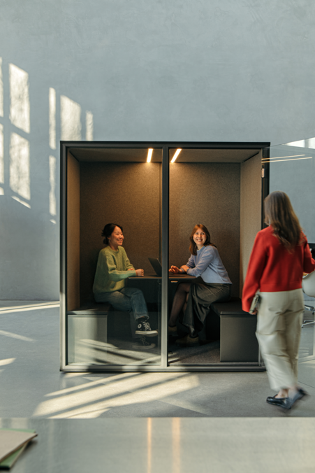 Spazi che riducono il rumore, creano concentrazione e favoriscono la produttività – dalla postazione individuale fino alla riunione di team.