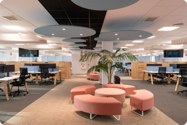 Soluzioni acustiche realizzate con materiali riciclati creano spazi in cui concentrazione, creatività e collaborazione diventano naturali.
